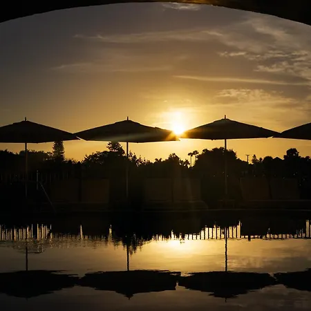 The guestrooms look out on the pool. They are decorated with elegant furniture.